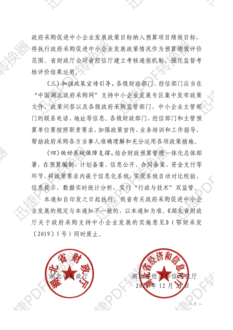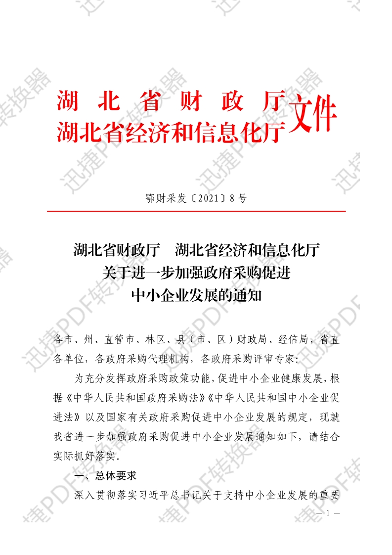 湖北省财政厅 湖北省经济和信息化厅关于进一步加强政府采购促进中小企业发展的通知