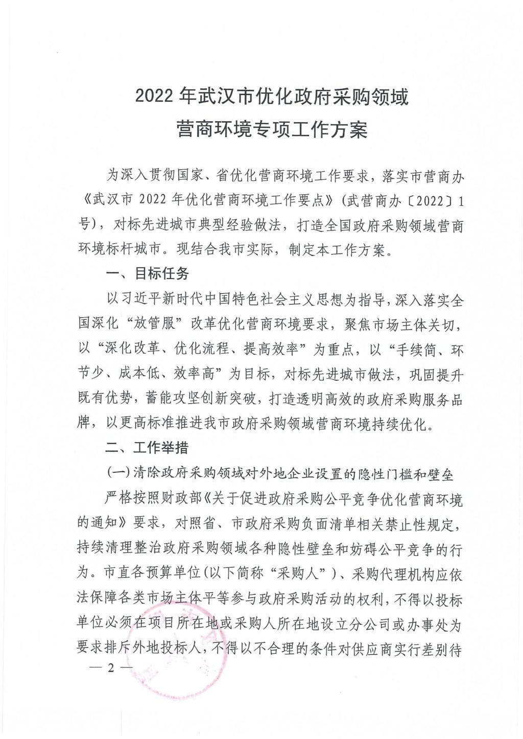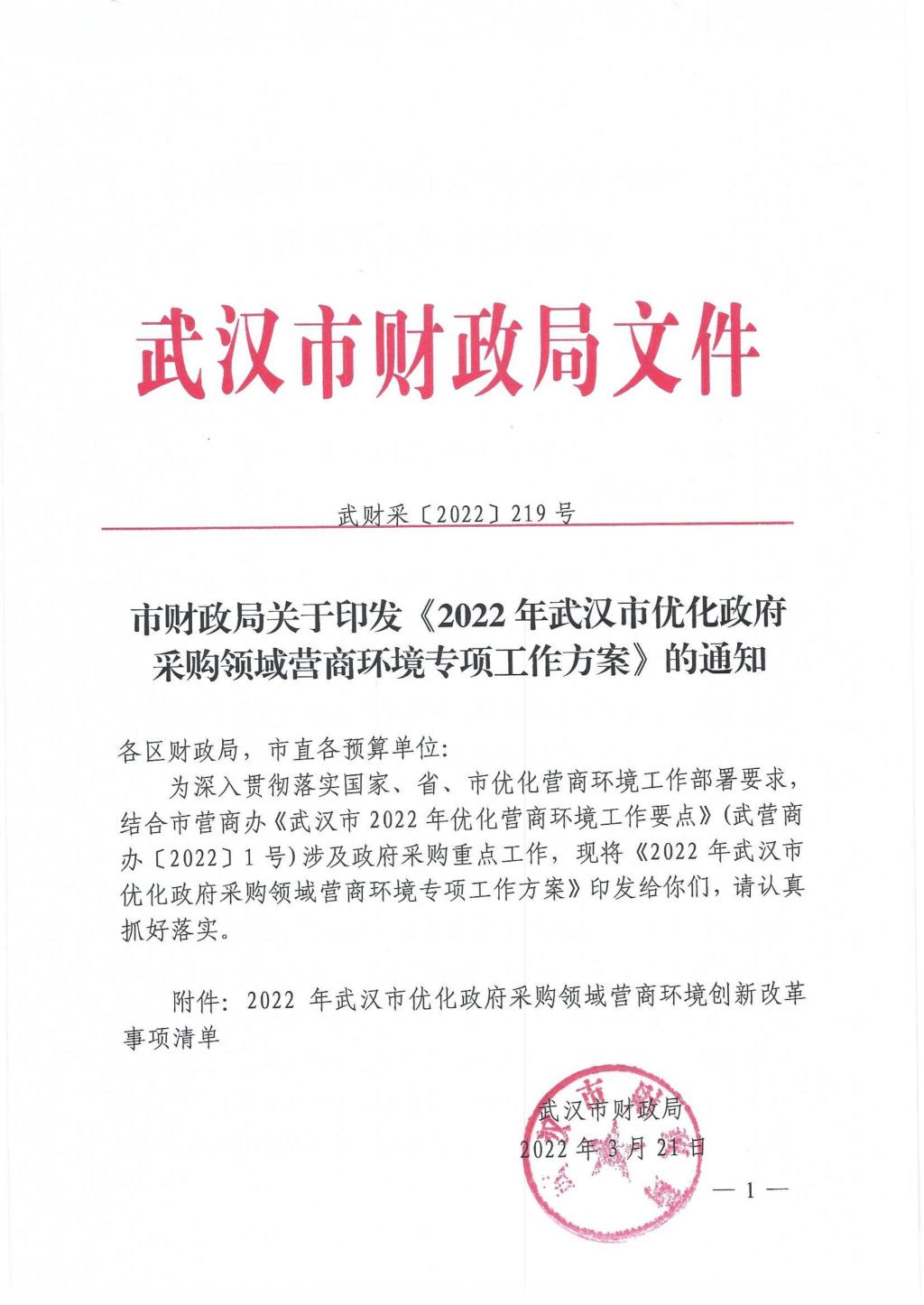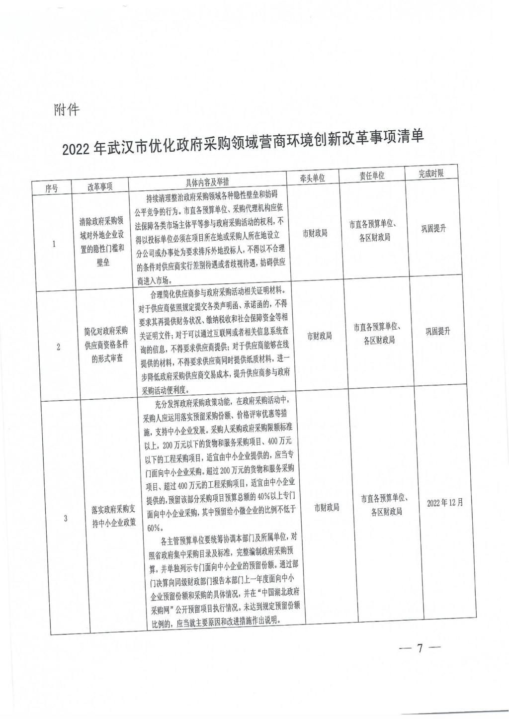 市财政局关于印发《2022年武汉市优化政府采购领域营商环境专项工作方案》的通知