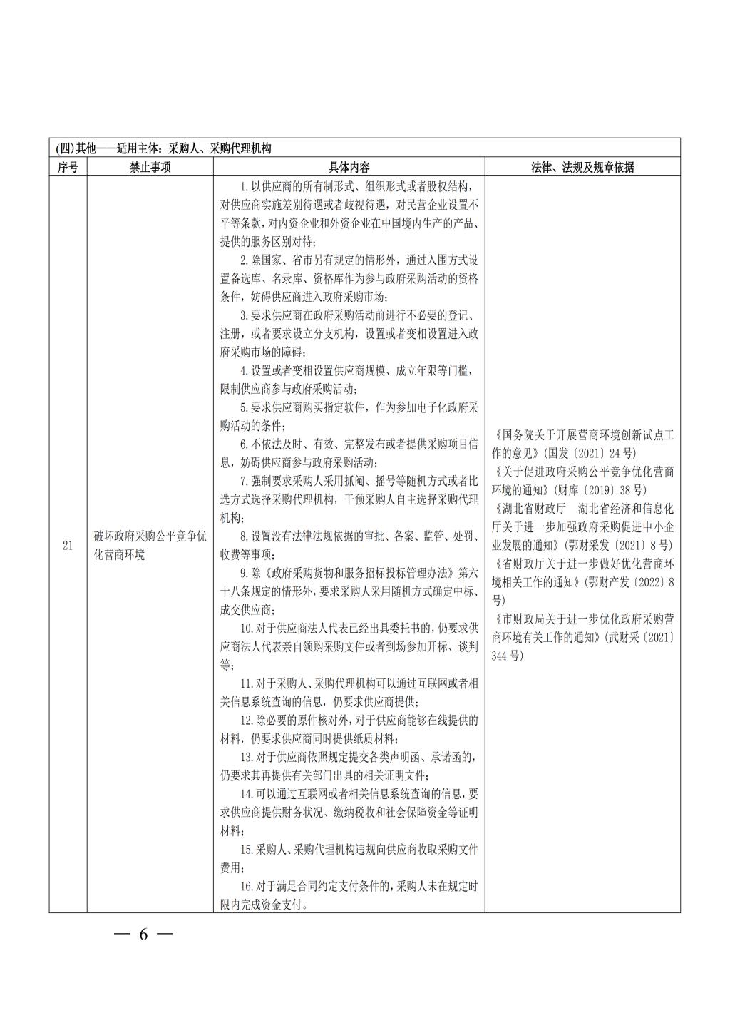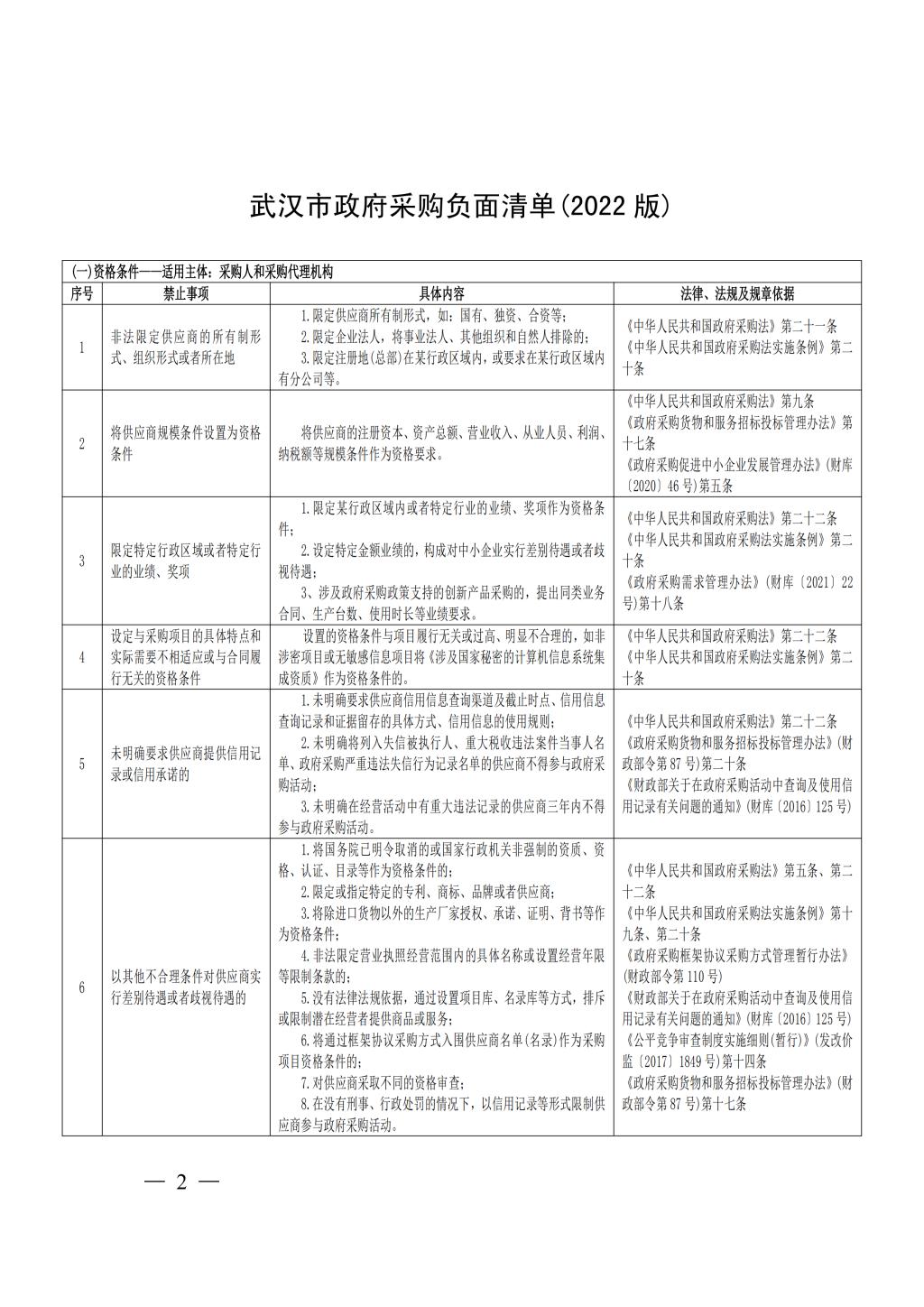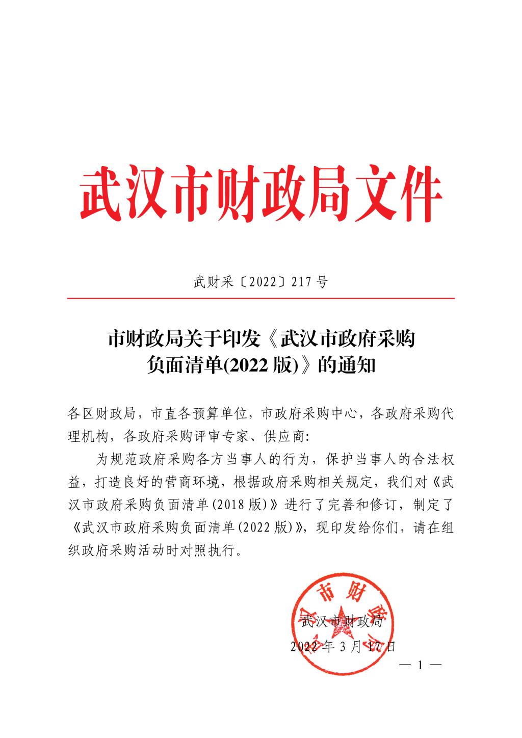 市财政局关于印发《武汉市政府采购负面清单(2022版)》的通知