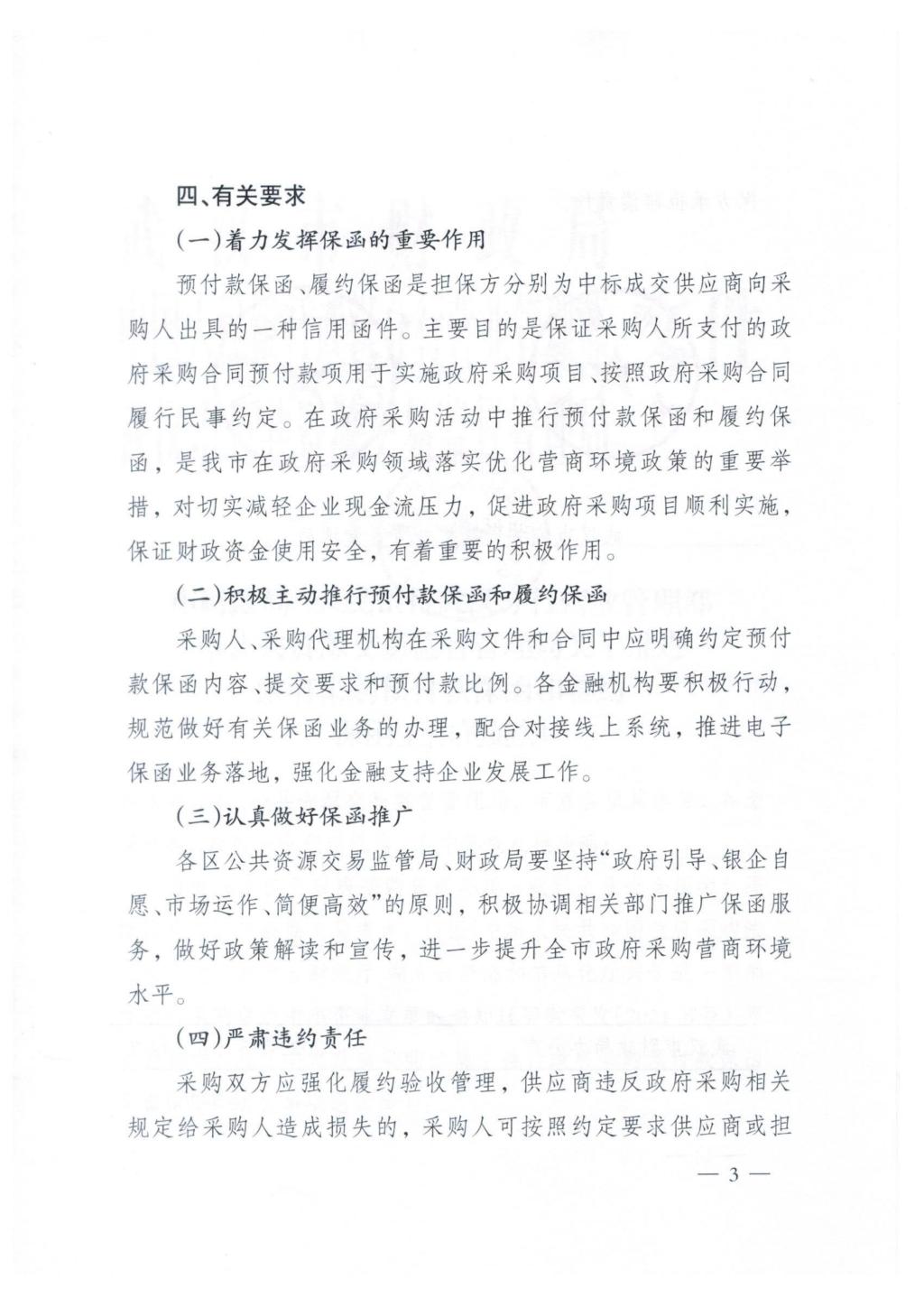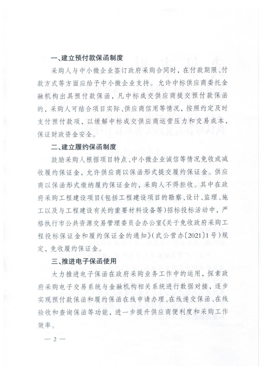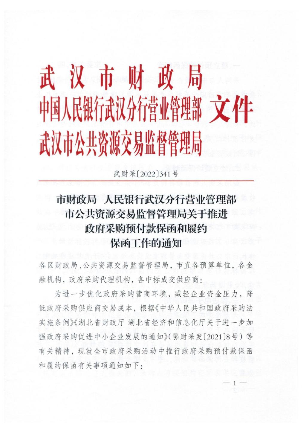 市财政局、人民银行武汉分行营业管理部、市公共资源交易监督管理局关于推进政府采购预付款保函和履约保函工作的通知