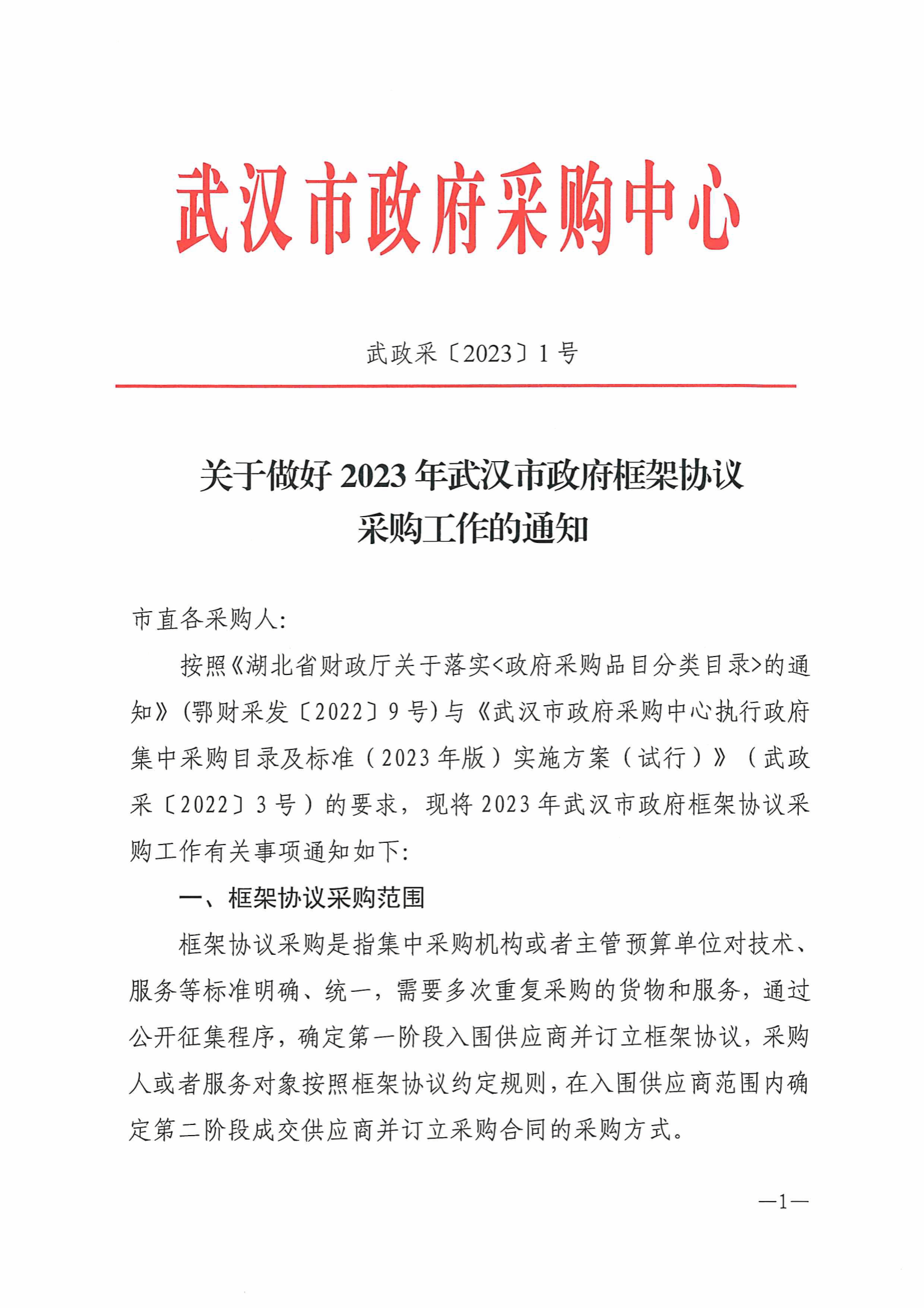 关于做好2023年武汉市政府框架协议采购工作的通知